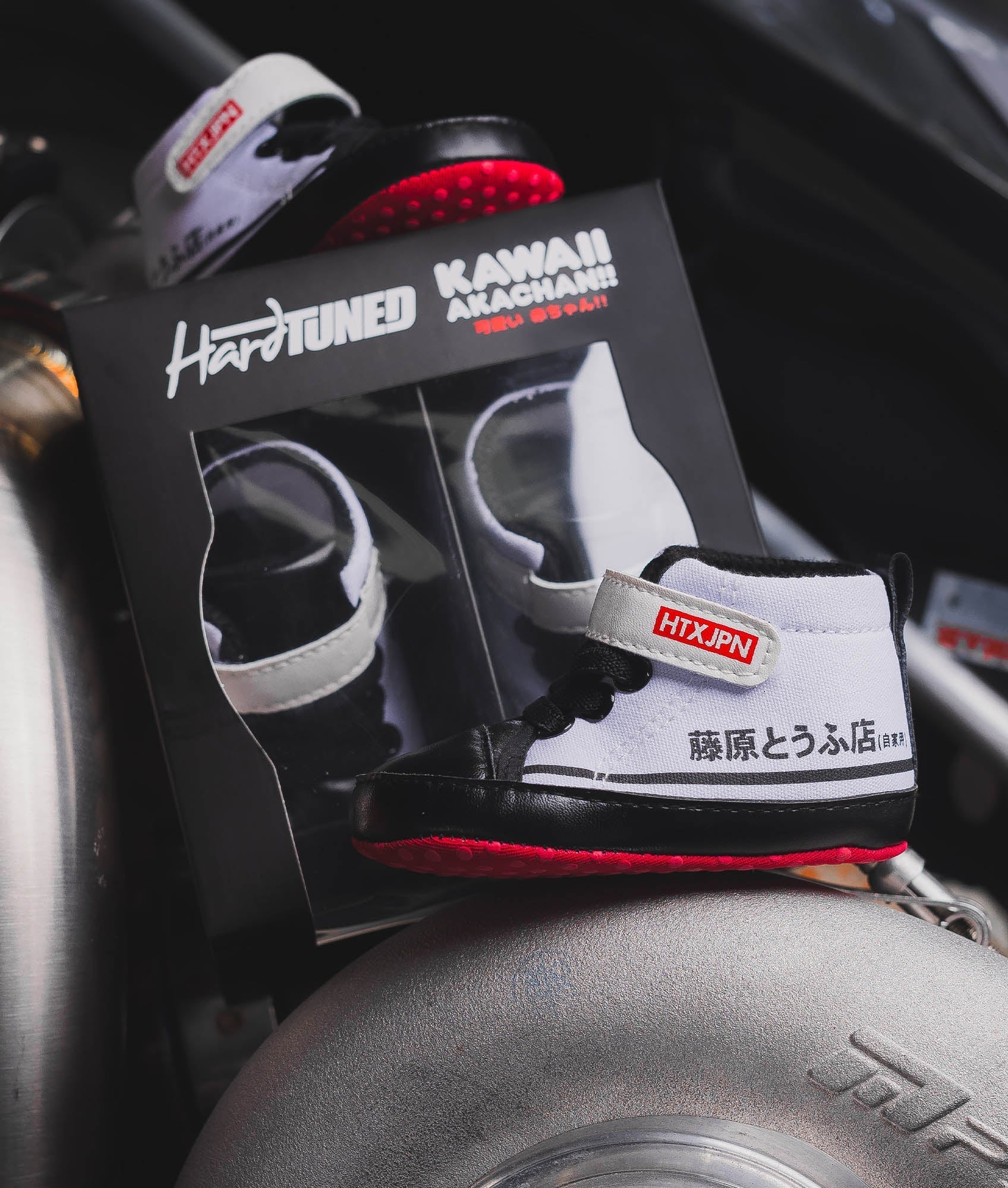 The same iconic detailing, just smaller! We are over the moon to release these baby versions of our Fuji2s, individually packaged in a cute display box and including stretch laces and a Hardtuned branded velcro strap for the perfect fit.