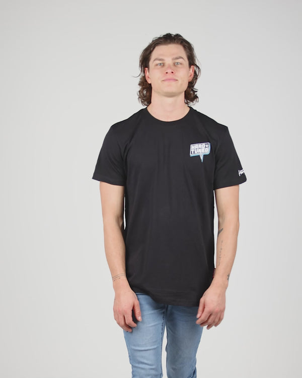 Printed in a bold cell block style with premium plastisol flex inks and laid on a Hardtuned hand-tailored premium combed cotton t-shirt, with 2% elastin for improved fit and comfort.