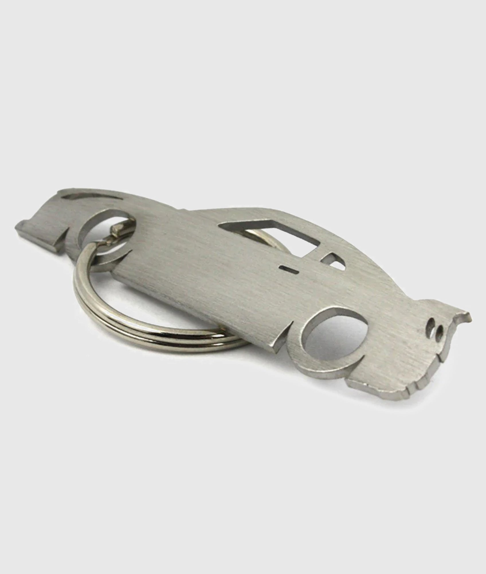 Stainless steel key ring with both sides polished using a brushed effect.