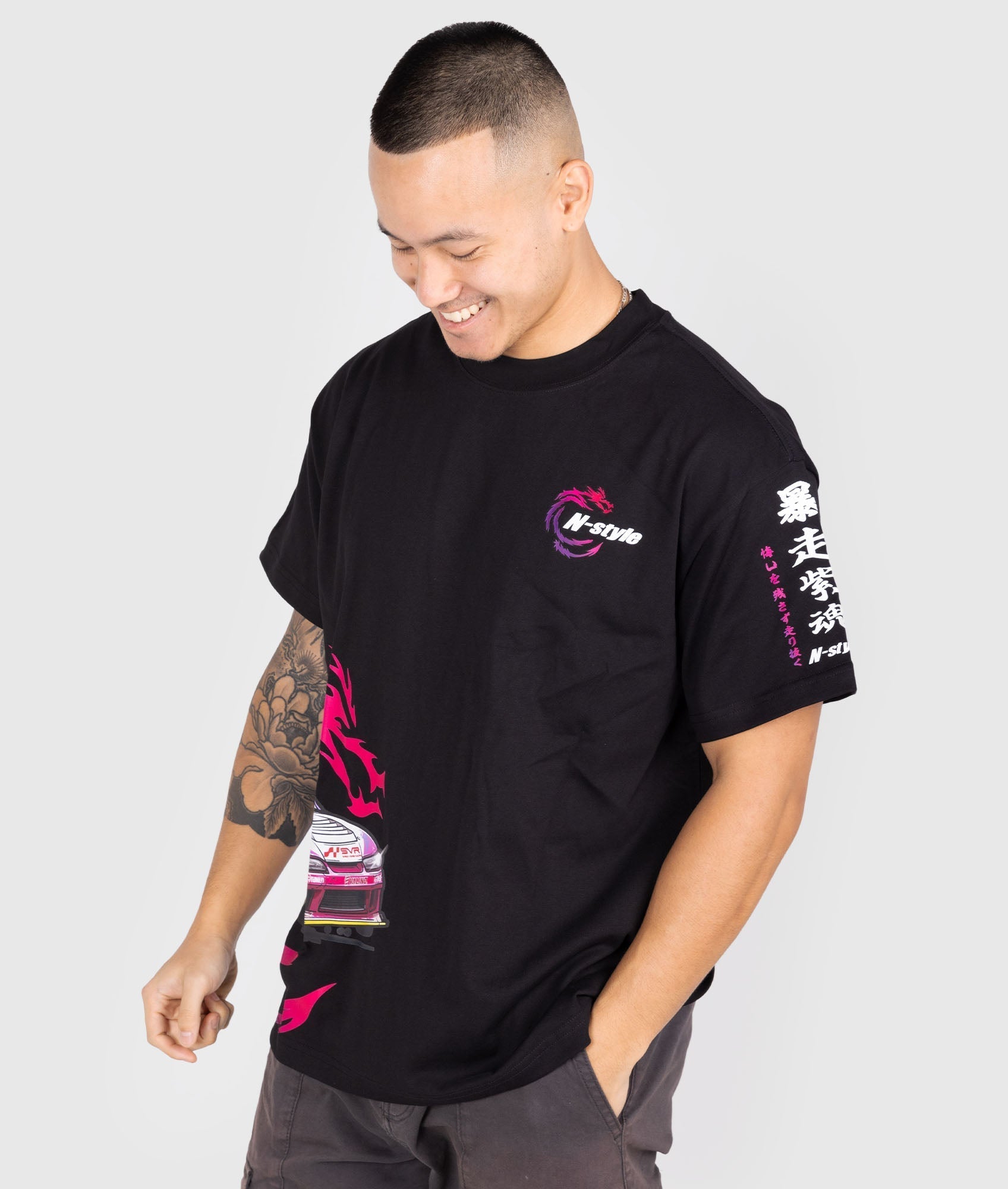 We're proud to announce our continued partnership with legendary drifter Naoki Nakamura and the Team Alive Drift Team. Featuring his classic S15 in a squished style, this tee will fit in perfectly at your next drift event!