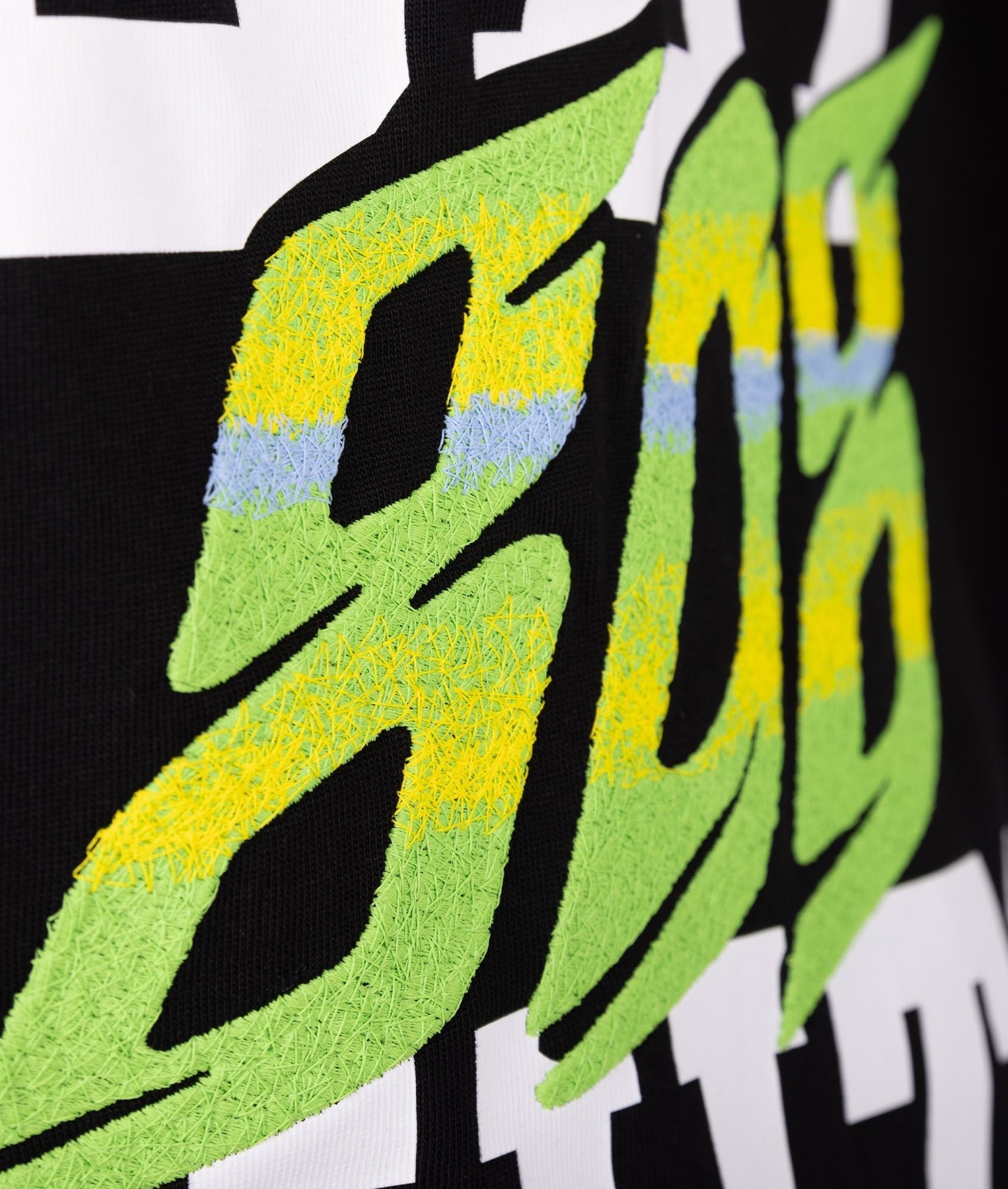 Tailor made on our newly designed BOX CUT heavyweight tee, this garment was created to push the boundaries of our manufacturing, incorporating puff embroidery, screen & even hand melted embroidery rear!.